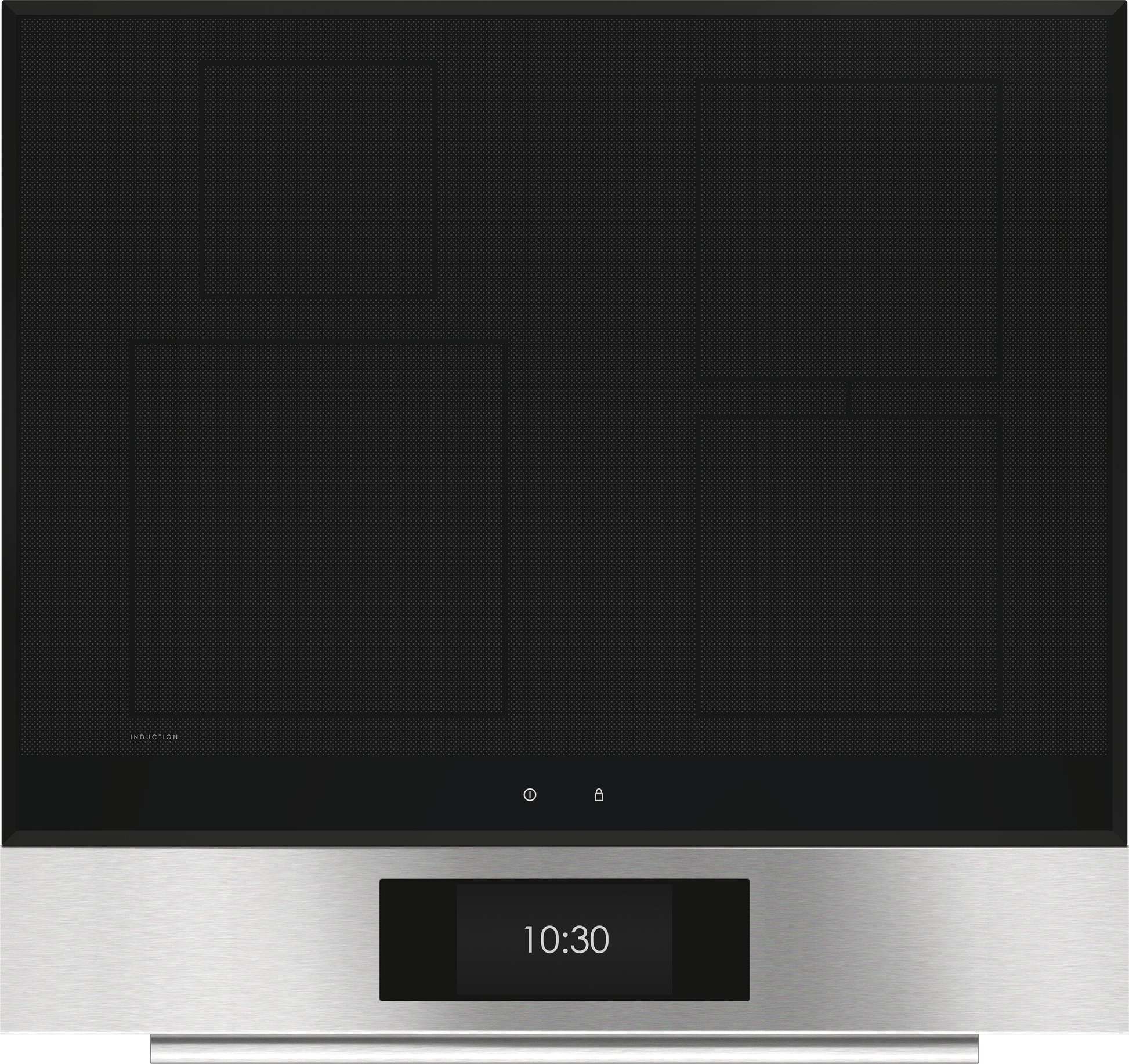 The sleek rangetop features a striking interactive display. The full-color touchscreen is intuitive, easy to read, and locks for safety and cleaning