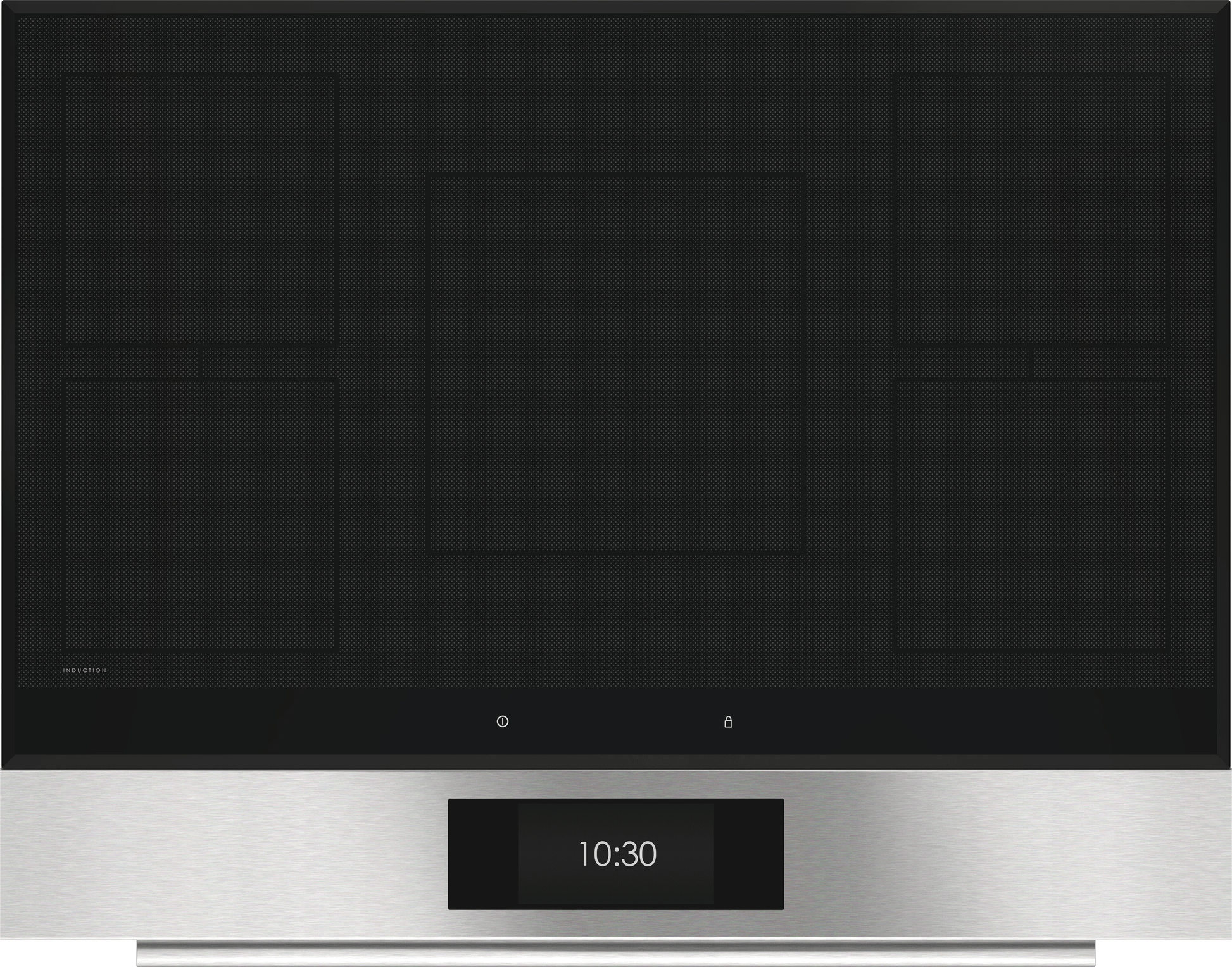 The sleek rangetop features a striking interactive display. The full-color touchscreen is intuitive, easy to read, and locks for safety and cleaning