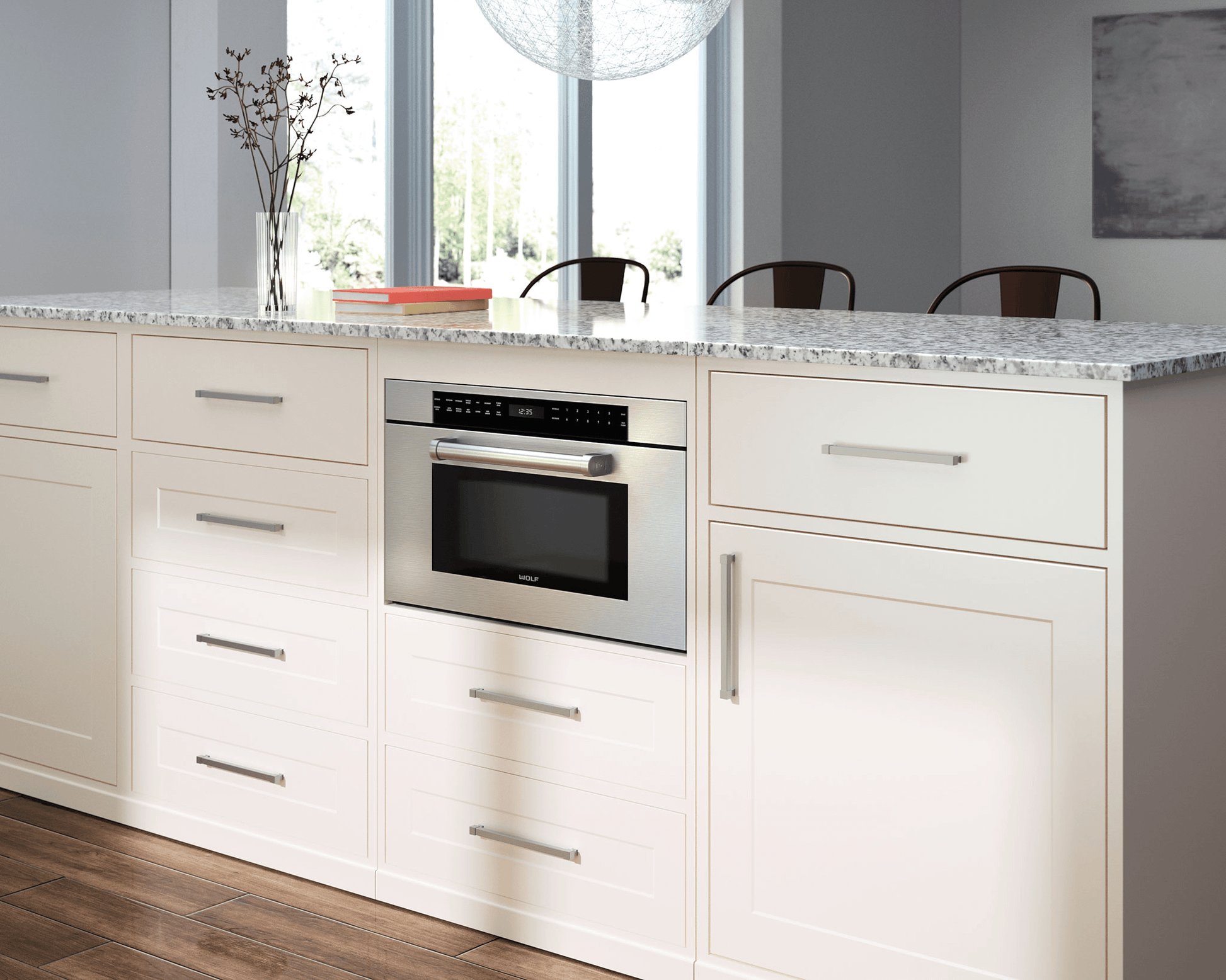 Install into surrounding cabinetry to coordinate with other Wolf built-in ovens and warming drawers
