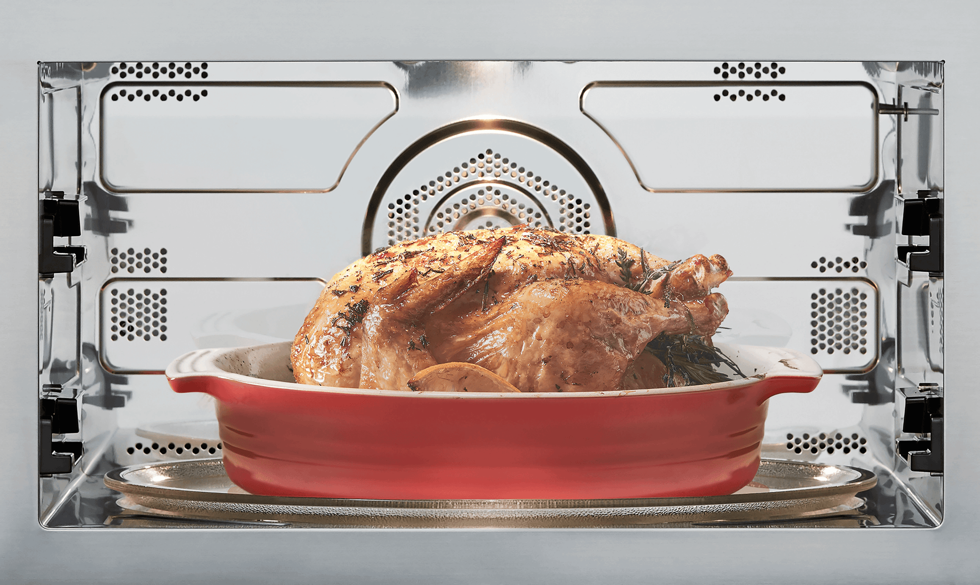 Combines microwave, convection, and broil technologies to provide all-in-one oven versatility