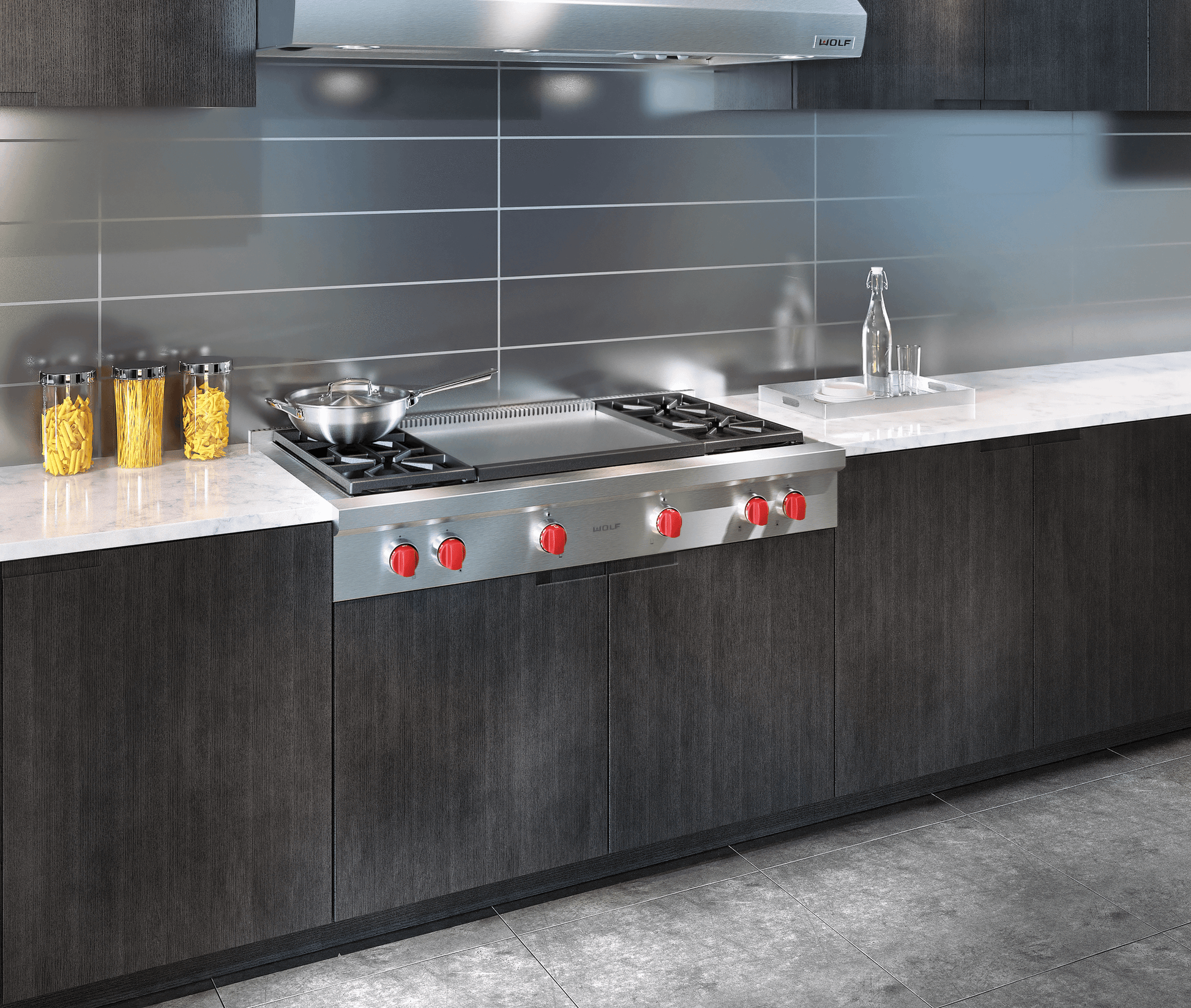 Match other Sub-Zero, Wolf, and Cove products with heavy-gauge stainless steel and signature red infinite control knobs
