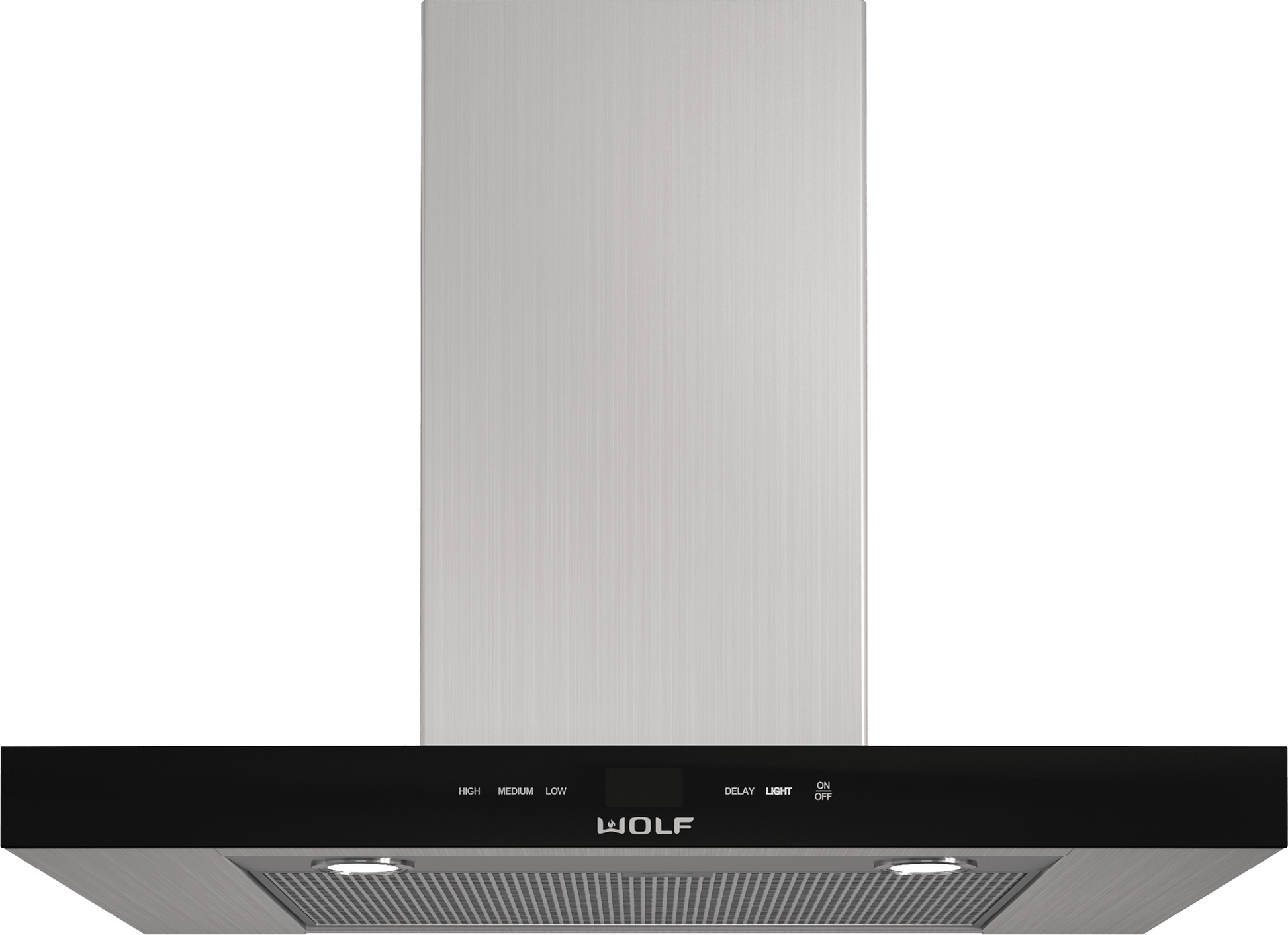 Coordinates with Wolf ovens and cooktops with its contemporary, low-profile, black glass look