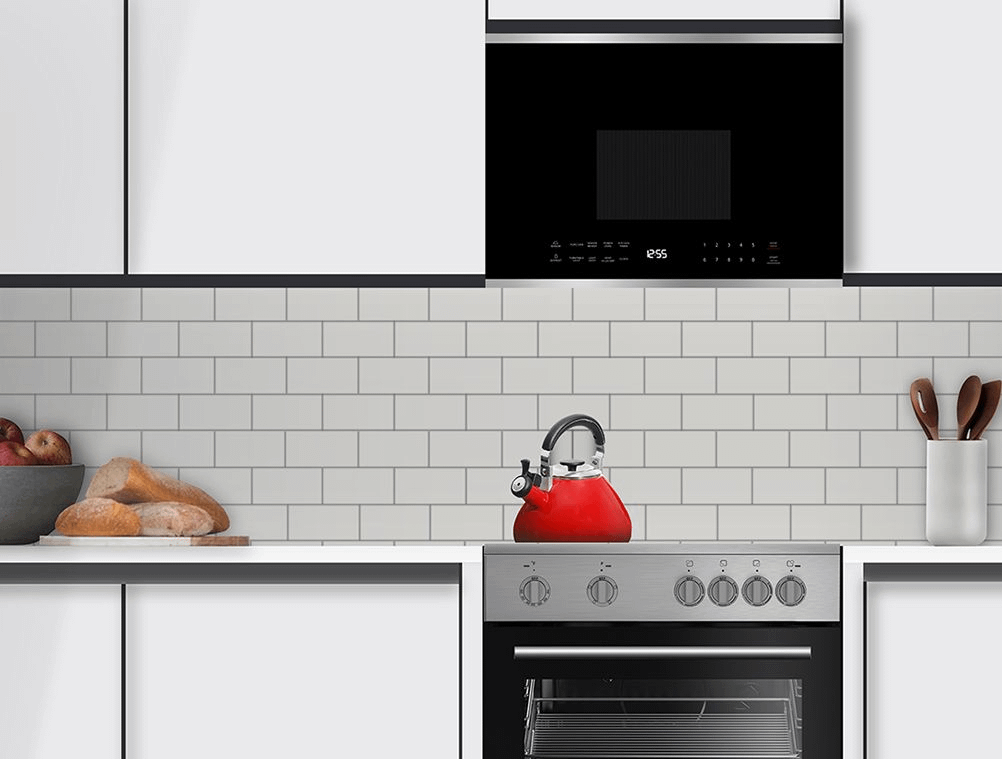 This elegant space saving appliance is both an efficient, fully featured microwave oven and kitchen ventilation system capable of either recirculation for installations where venting outside is not possible, or ducted operating from either the top or rear of the unit.