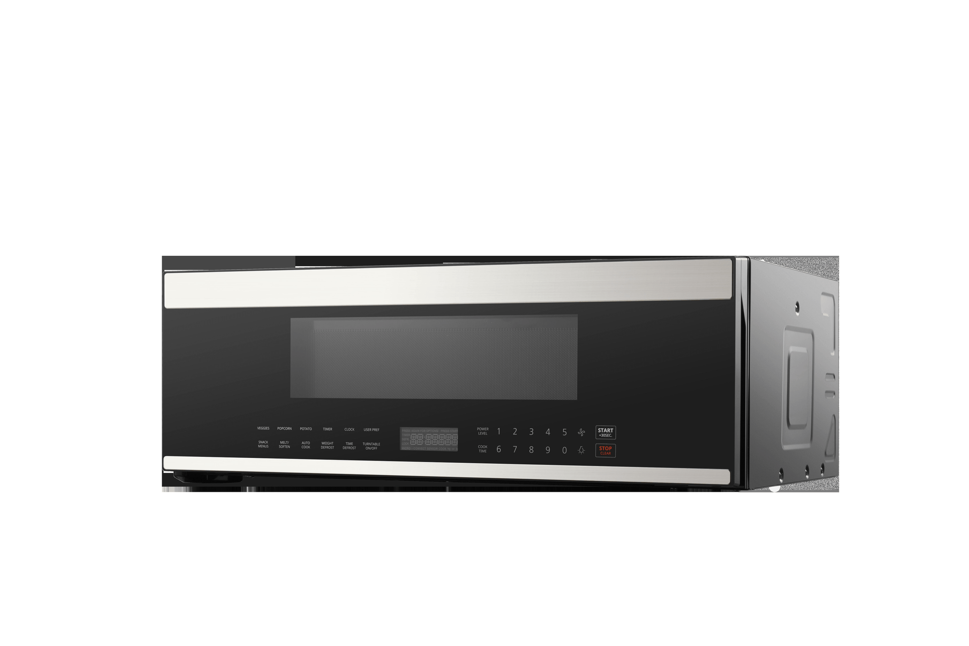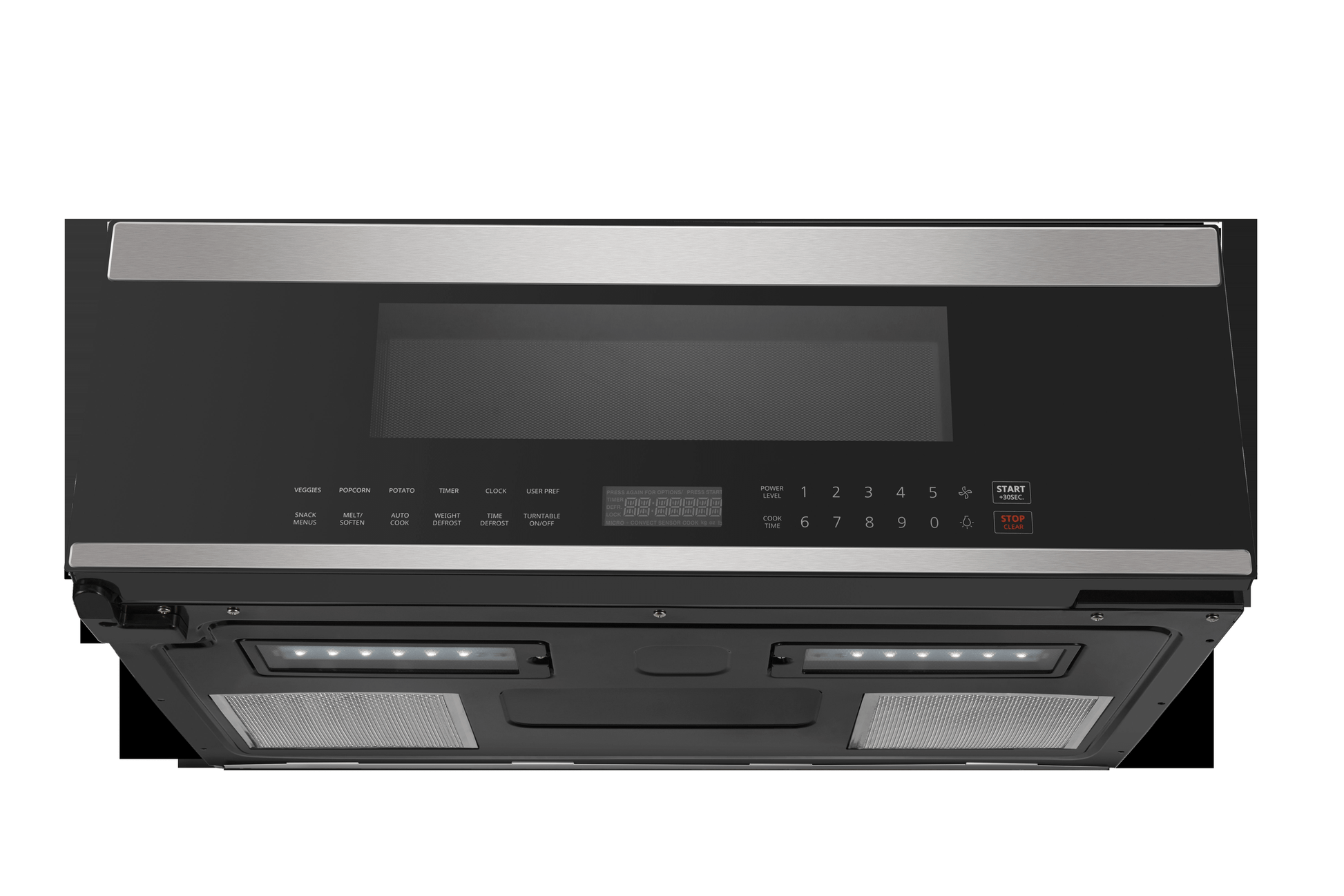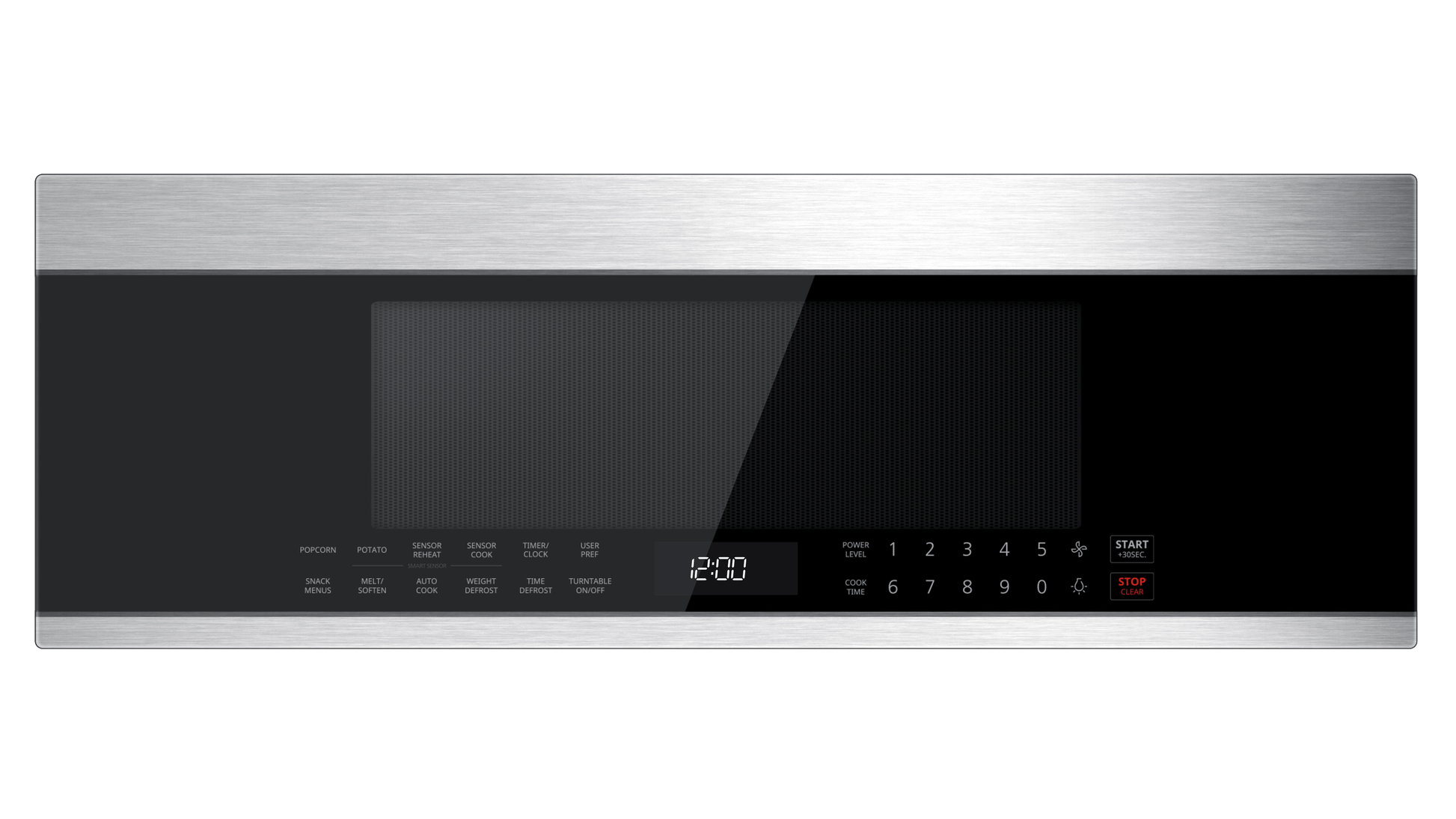 This elegant low profile appliance is both an efficient, fully-featured microwave oven and kitchen ventilation system capable of either recirculation for installations where venting outside is not possible, or ducted operating from either the top or rear of the unit.